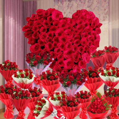 Heart shape 1000 red roses+ 20 small bouquets(10 red roses each)