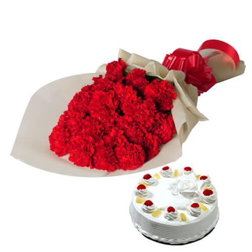 Ordered this combo for our anniversary. The 1kg Pineapple cake was delicious and the Carnations were fresh. My wife loved it!