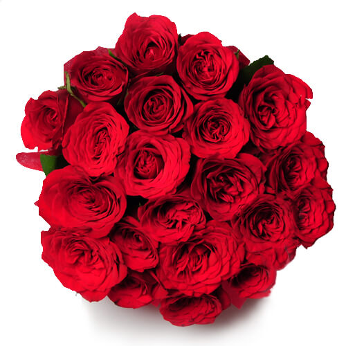 Bunch of 20 Red Roses in a cellophane Packing. The simplest and of choice the best way to say "I love you".